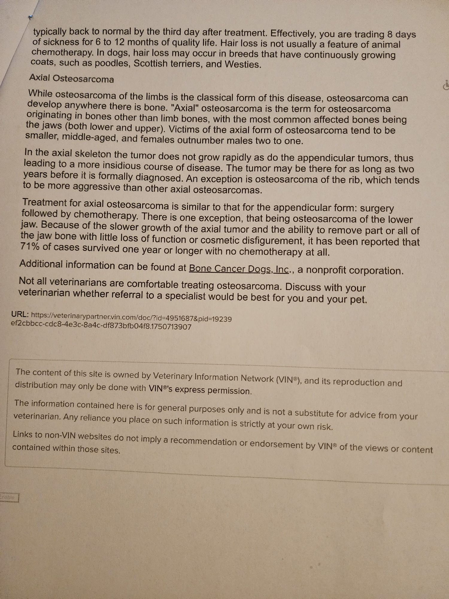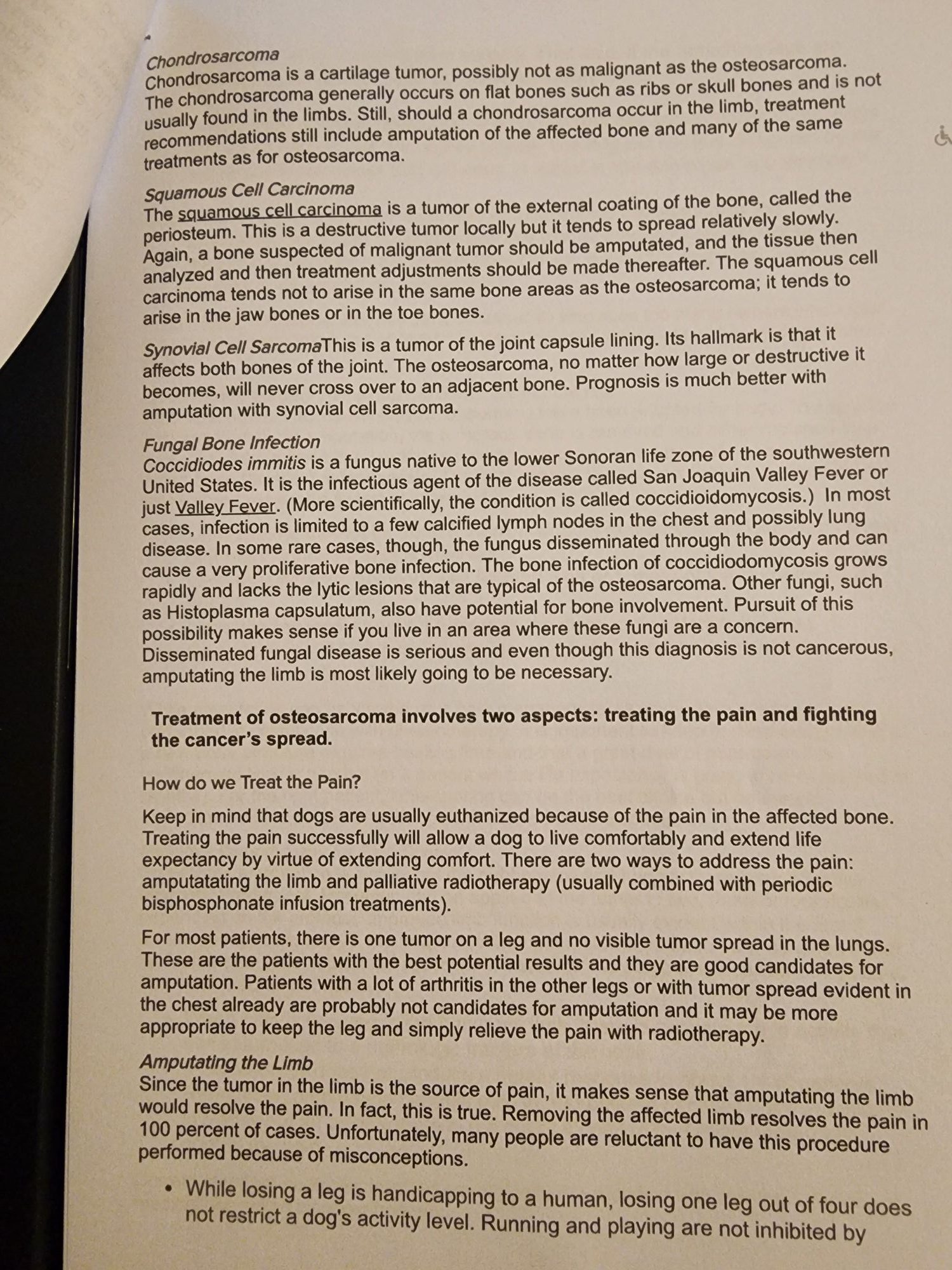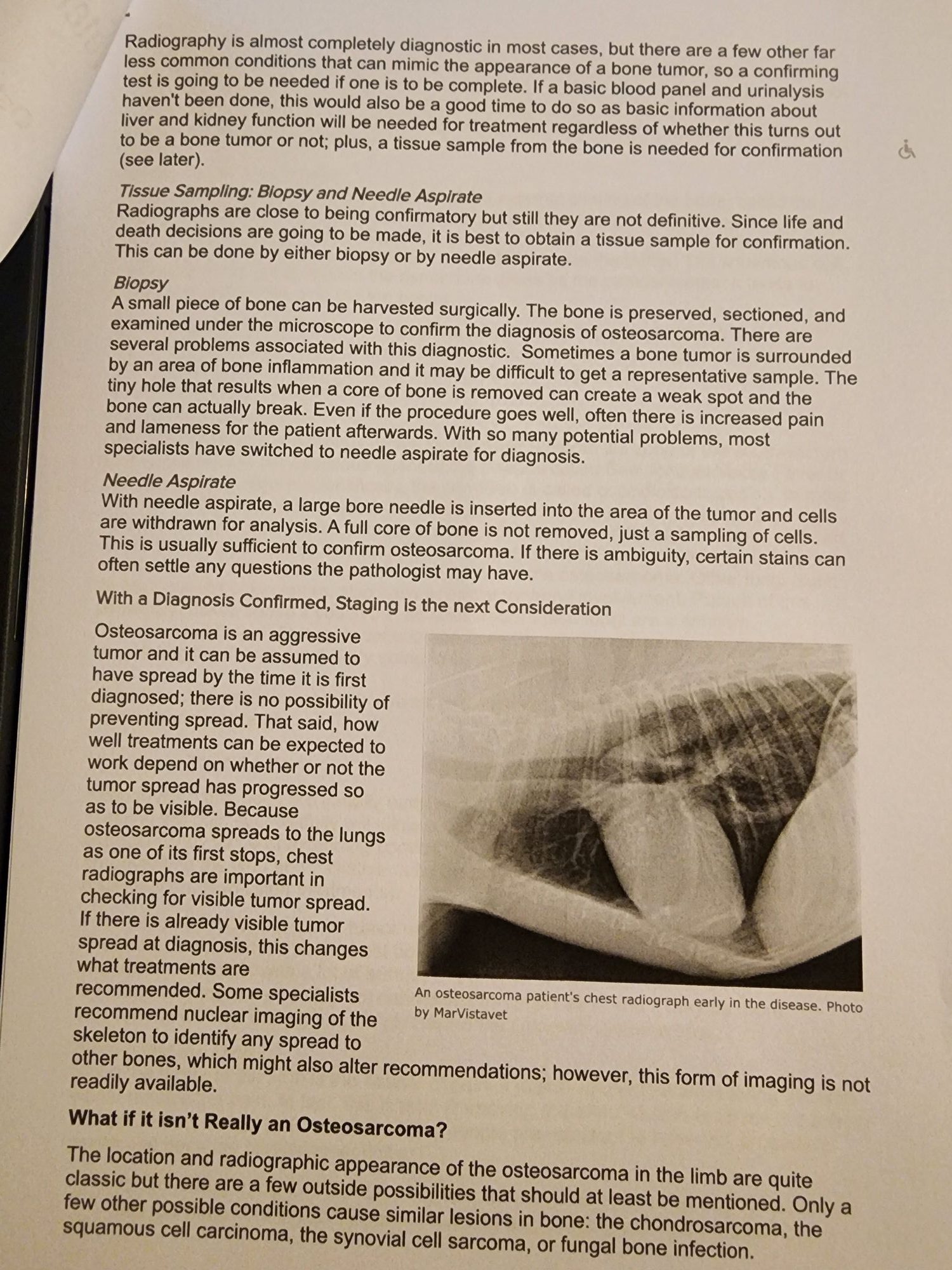 Very useful information for Vok and dogs that face the dreaded osteosarcoma diagnosis, provided for Vok by his veterinary center:
