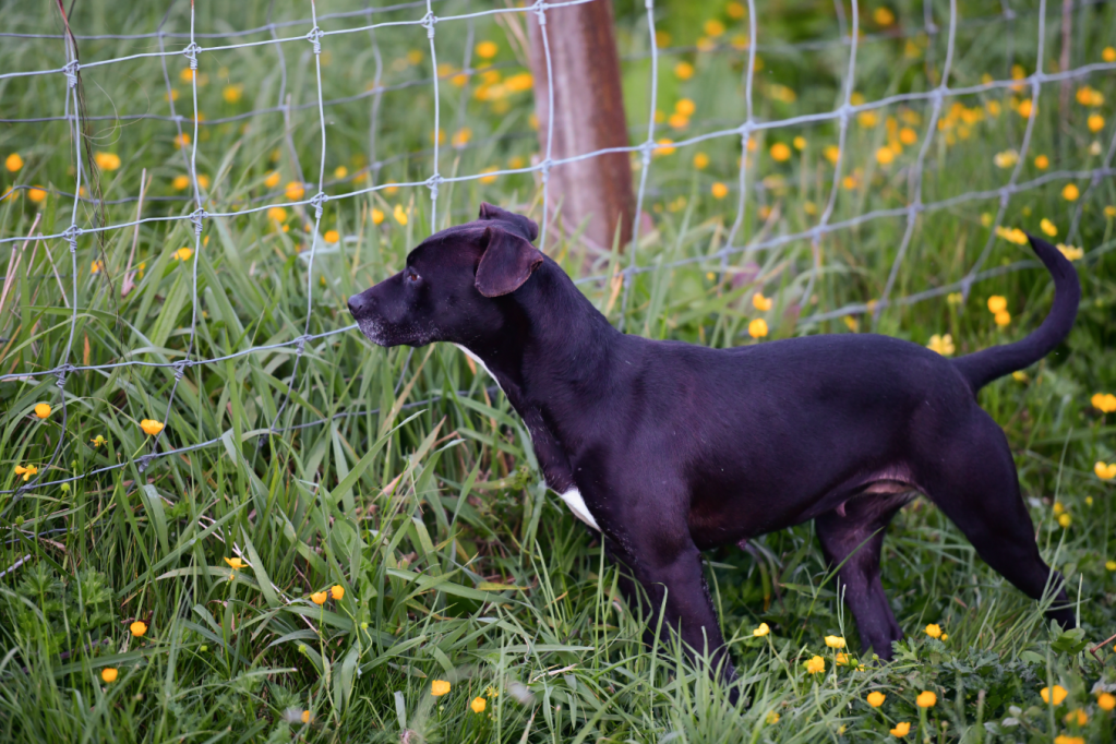 Medium small, gentle, and delicate, Violet is a precious pound rescue in need of a loving home. We believe Violet is a small sighthound x, perhaps with a blend of JRT and staffy in her lineage. She is the size of a small staffy with the allure, demeanor and grace of an Italian Greyhound. We estimate that Violet is around 4 years old.