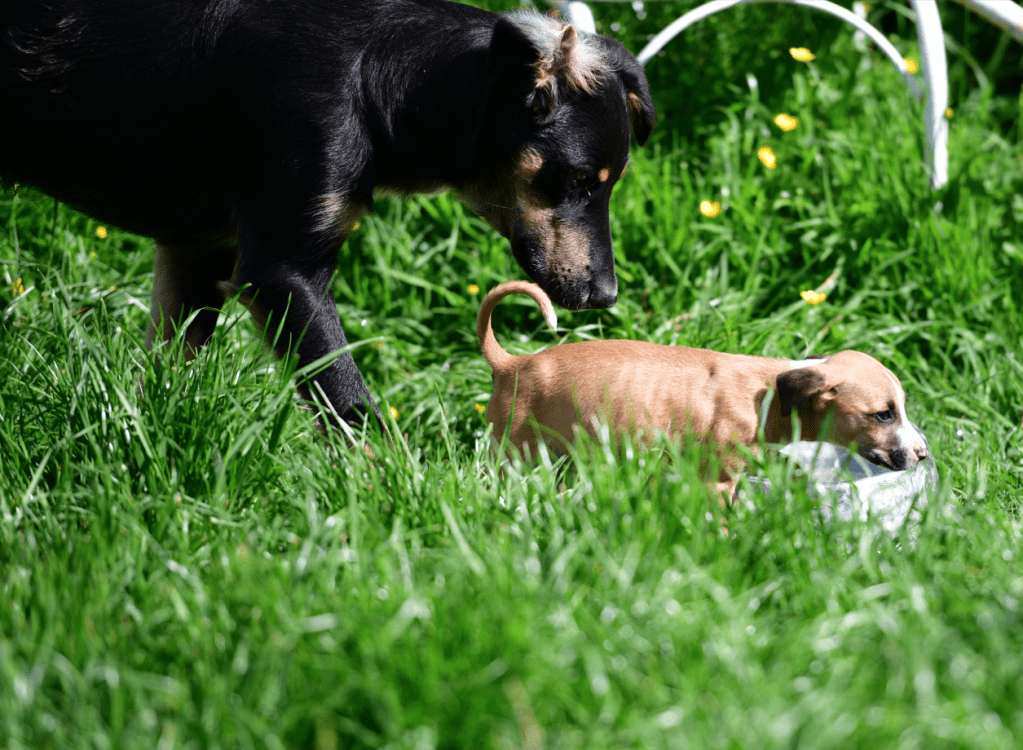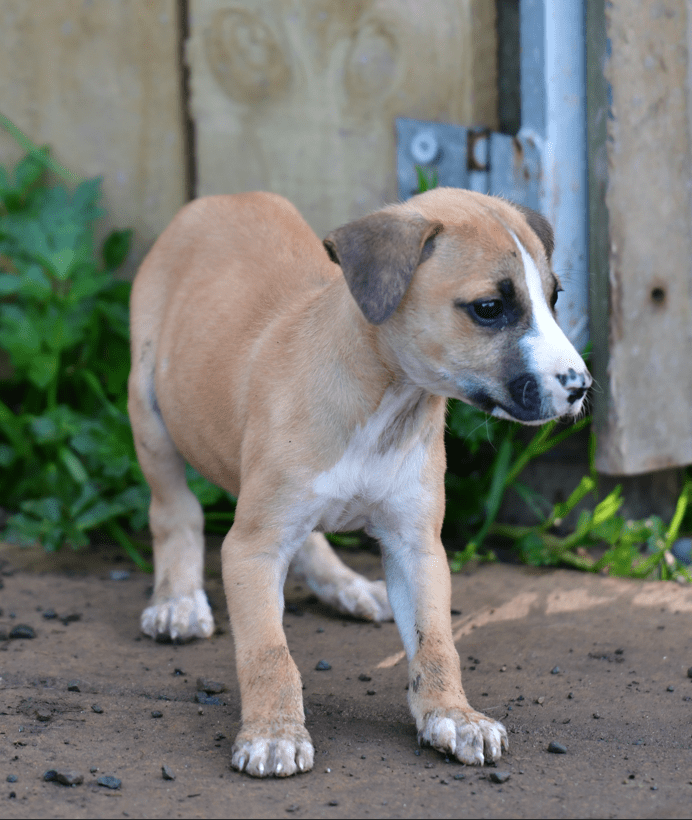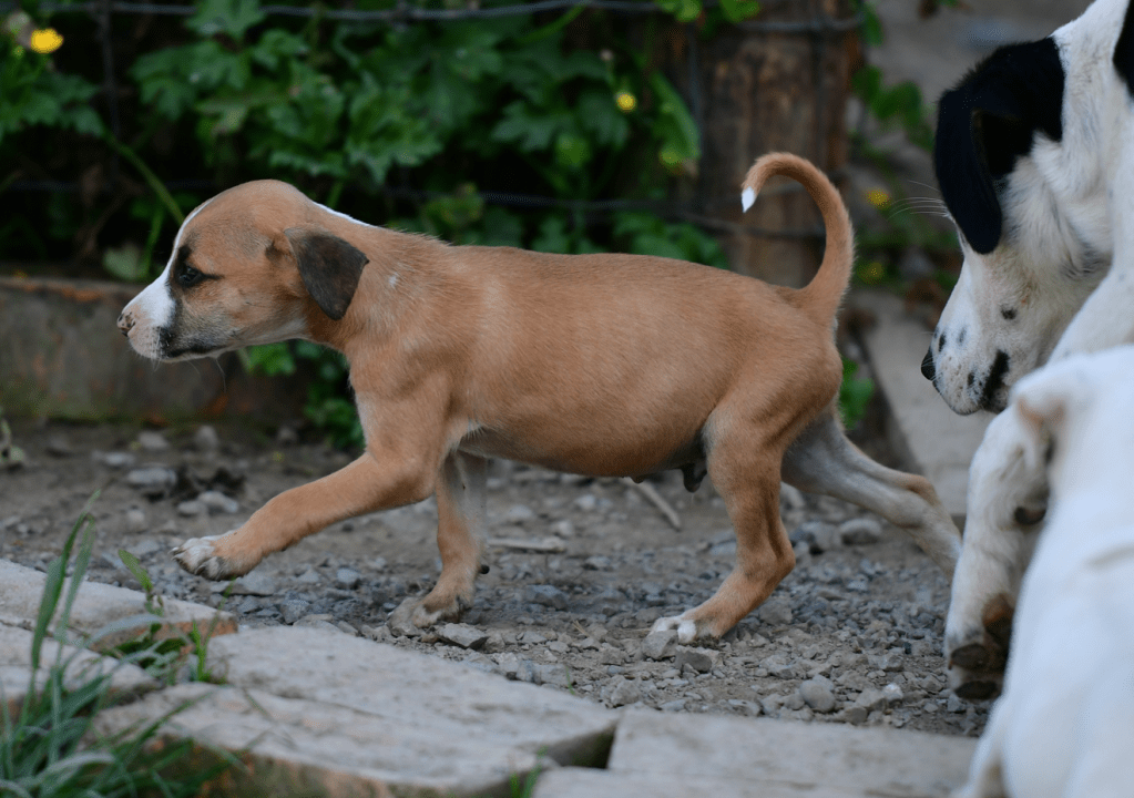 Literally – the four pounds pups are each weighing a bit over 4 pounds, and they come from the pound where they ended up after being dumped. They all have playful personalities and boundless energy and they are happy puppies. We are not certain of the exact age, but it is estimated to be around 6 weeks, suggesting they are in the crucial early stages of development where socialization and training are essential. Additionally, they seem to be a small-ish breed, perfect for families looking for a compact companion. As a comparison, they are noticeably smaller (and lighter) than the 4-week Phatties, making them an ideal choice for those who may prefer a petite pet with an equally huge heart.