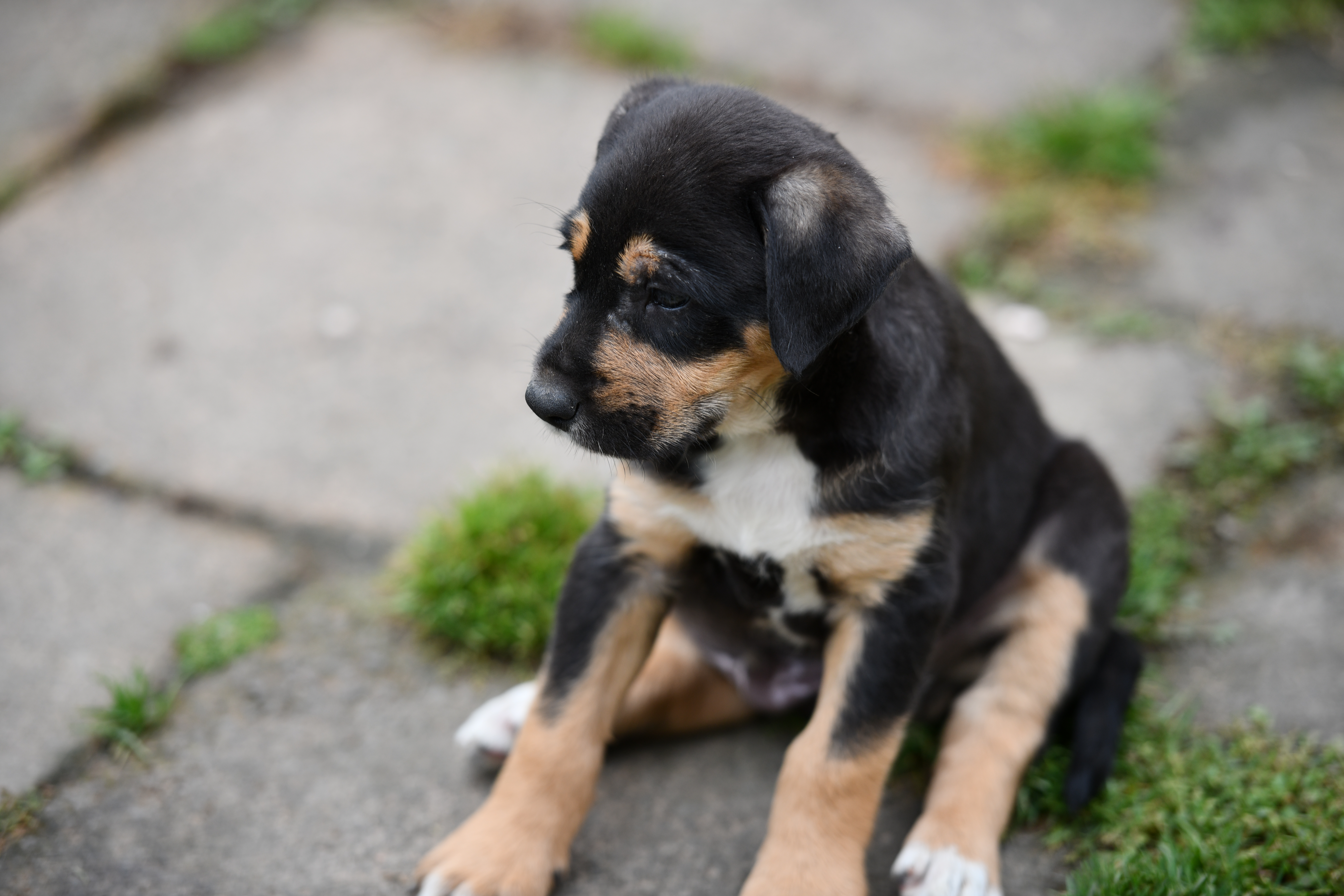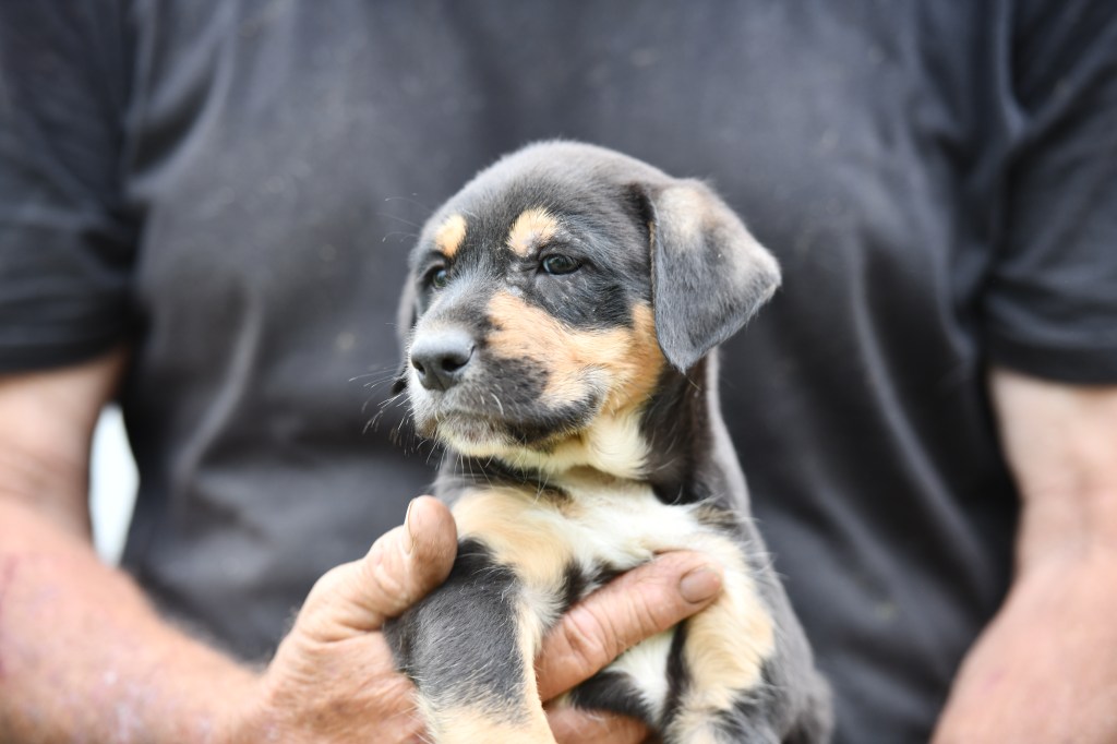 PHATTIE 7 – he is the only one darker puppy (dark grey), with a huntaway x dad and a beardie x mom. He had a faint scar around his eye which is barely visible now, from playing with his littermates (has been vet checked). He has a beautiful even temperament, and weights 3.5 kg, with an estimate adult weight at around 25-30 kg.