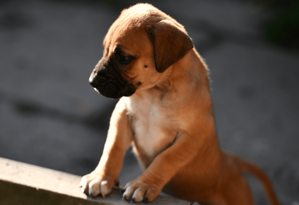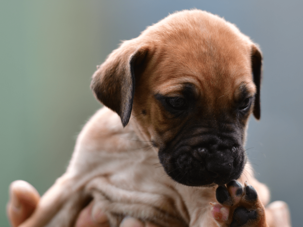 Odette is adorably wrinkled, with a dark mask and big blue eyes (the color will probably change). She is a fit and playful puppy but she is the most content taking a nap in your arms. She has been hand fed by us and raised inside, so she is very human oriented. She has been heavily socialized by JDC K9 pack, and raised along with multiple other litters and adult dogs on site. She obviously gets along with all dogs wonderfully and has great dog to dog social skills. She is very clean and house trained, provided that she has access outdoors. All the Three Little Ladies are very affectionate, with good manners for their age. They are expected to grow to medium sized adults, with a medium energy level, very suitable as companions and indoor family pets.