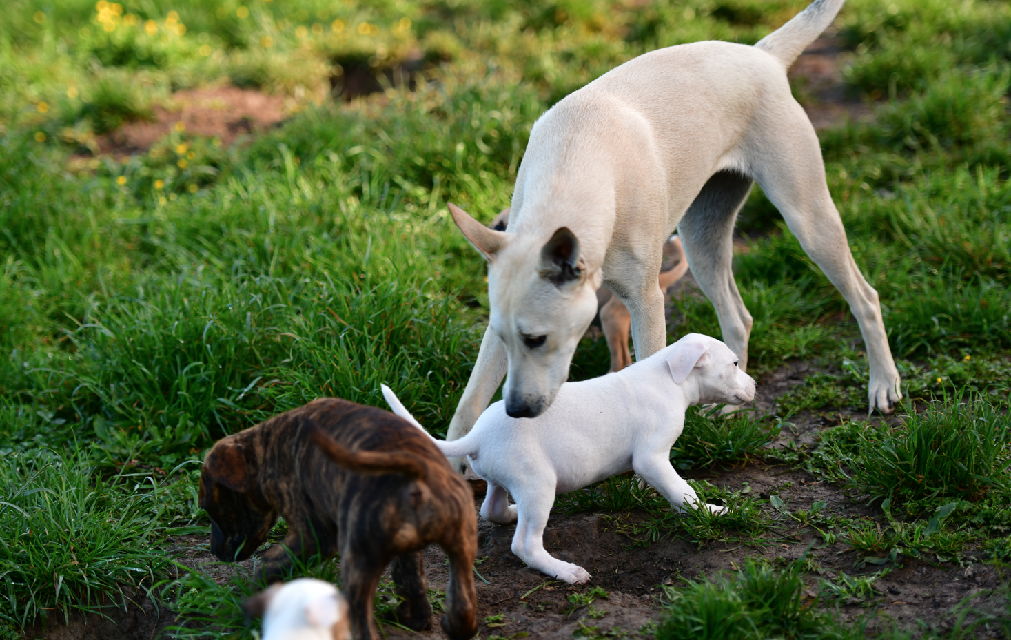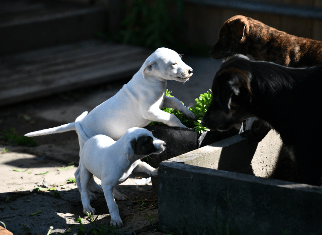Please let us introduce the handsome puppy Casper – pound rescue, the largest of his litter, with very low maintenance needs, calm disposition, affectionate nature, and easy-going temperament. He was born late September 2025 and he has been with us from a very young age. We expect Casper to be medium towards small size, making him an ideal fit for various living situations, whether in a cozy apartment or a spacious house, and he will undoubtedly make a wonderful companion for anyone fortunate enough to welcome him into their home. Albeit bigger than his littermates, he is very noncompetitive, demonstrating his reliable and friendly demeanor with both people and dogs of all ages and sizes. Casper is particularly cuddly, often preferring a quiet time in your arms rather than running around energetically like some of his siblings. His love for gentle snuggles makes him an excellent choice for families or individuals looking for a dog to bring comfort and companionship into their lives. Some of his littermates present clear indications of Jack Russell lineage based on their size and body structure; however, Casper embodies a much calmer temperament without the typical high drive associated with that breed, making him not only unique but also a more adaptable pet for those seeking a tranquil yet affectionate furry friend. Casper is exceptionally clean, keeping his bright white coat spotless at all times. He is housetrained provided that he has outdoor access according to his age. We want Casper to go to a very loving home, as he is exceptionally loving, and in a calm environment as he will walk away from loud, hectic, rough play.