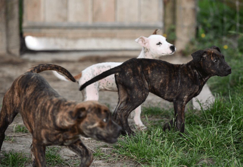Dior is having a great time playing in Run 2 with his sister and two other brindle friends of similar or older age. He gets along wonderfully with JDC dogs and is very friendly with people.