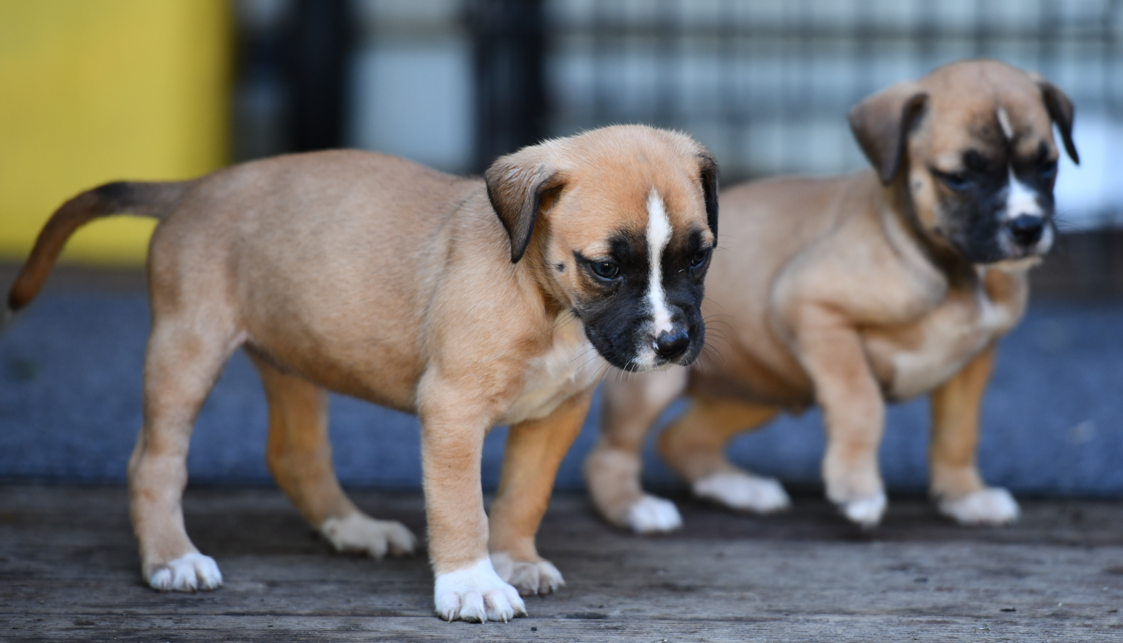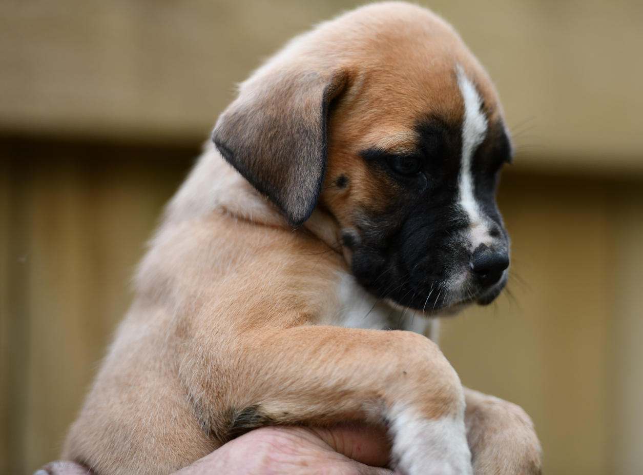 Yvonne is the biggest of all three girls, and the calmest. She has beautiful big blue eyes (the color will probably change). She is very affectionate and loves to be held. She has been hand fed by us and raised inside, so she is very human oriented. She has been heavily socialized by JDC K9 pack, and raised along with multiple other litters and adult dogs on site. She obviously gets along with all dogs wonderfully and has great dog to dog social skills. She is very clean and house trained, provided that she has access outdoors. All the Three Little Ladies have good manners for their age. They are expected to grow to medium sized adults, with a medium energy level, very suitable as companions and indoor family pets.