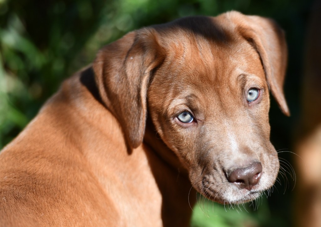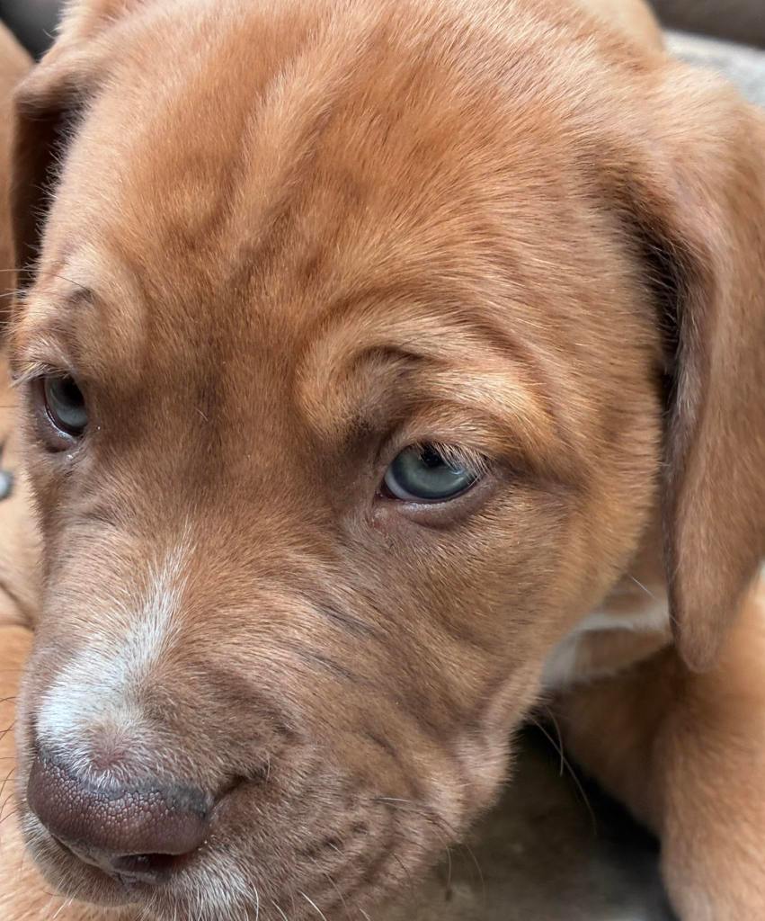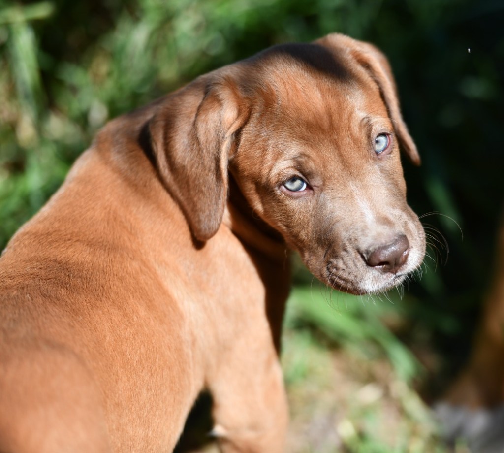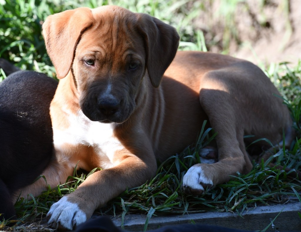 Azarra is a gorgeous 2-month-old puppy, an emergency rescue now ready for adoption. Born to parents abandoned in the bush, she beat a deadly strain of parvovirus at just 5 weeks old. The biggest and strongest of her litter, she has striking blue eyes that seem far wiser than her age. With a sweet nature and unusually good eye contact for such a young pup, she’s truly one of a kind. A mastiff mix, she’s set to grow into a large, gorgeous dog. Food motivated with a low to medium energy level, she loves people and gets along wonderfully with all the other dogs.